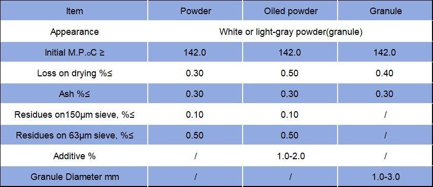 Properties: White or light gray powder (granule). The density is 1.29. Soluble in benzene, acetone, chloroform, CS2 partly soluble in alcohol, diethyl ether, CCI4 insoluble in water, gasoline and alkali with lower concentration. Meeting hot water becomes to dimethyl ammonium and CS2. Be sensitive to skin and peogaster.